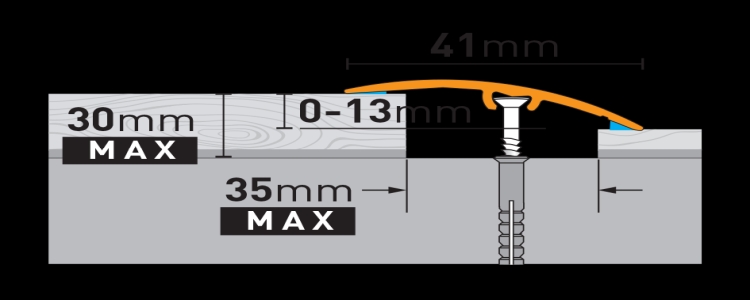 Acest Profil SM2 are lungimea de 90cm, latimea 41mm si suporta o diferenta de nivel intre cele doua suprafete de maximum 13mm.