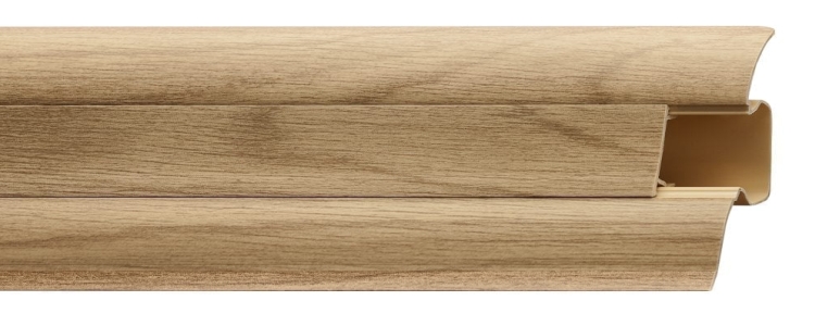 Plinta din PVC LM55 Stejar Antic 16 are urmatoarele dimensiuni 2500x55x26 si are prevazut cu loc pentru cabluri.